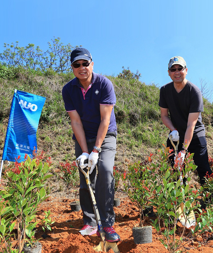 友達董事長暨執行長彭雙浪 (左) 與友達總經理暨營運長蔡國新一同響應植樹活動